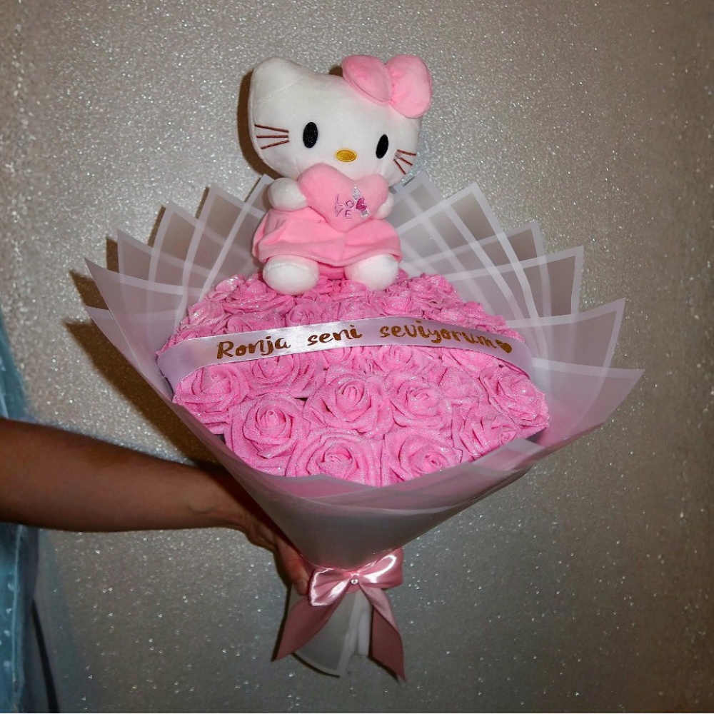 Surprise someone special with a handcrafted flower bouquet that never wilts. With cute plush toy, glitter, and customizable ribbon — a gift they'll never forget.